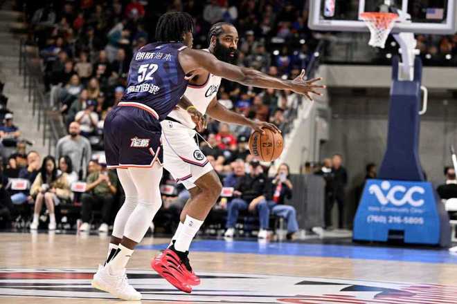 保罗首秀15+6,快船47分狂胜广州龙狮!小卡18分哈登9助半场打卡