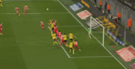 比赛第83分钟,萨比策右侧精准传中,斯文松顺势将球踢进门中,多特2-2追平!
